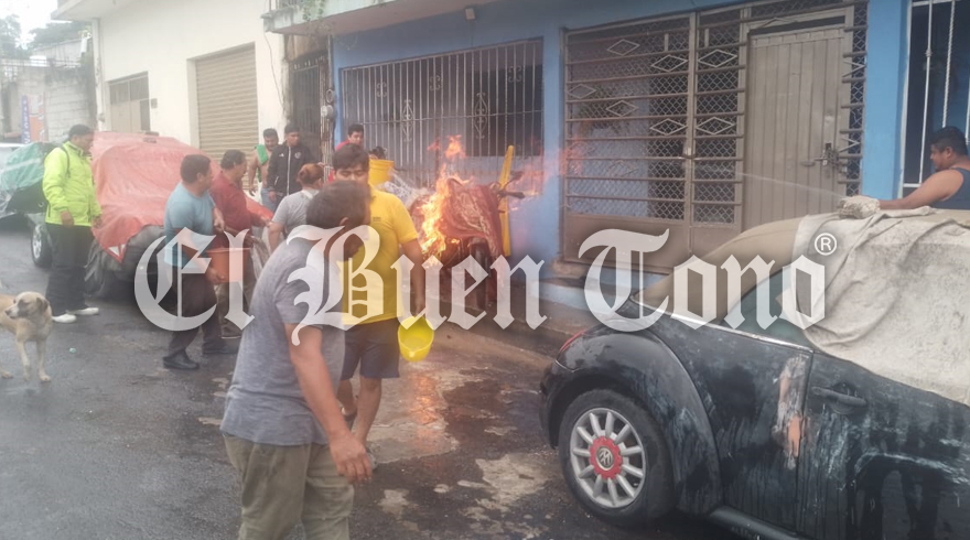 Vecinos trabajaron de manera coordinada con cubetas con agua para sofocar el siniestro, mientras llegaba personal de Bomberos en apoyo.