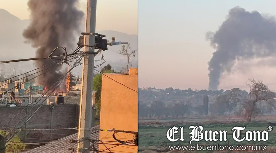 Tultepec.- En la mañana de hoy jueves, una vivienda presuntamente utilizada como taller clandestino para la fabricación de pirotecnia se incendió en el municipio de Tultepec, generando una columna de humo y explosiones que alarmaron a los vecinos del área.