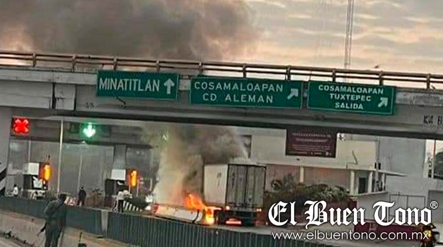 COSAMALOAPAN.- Un tractocamión con caja seca se incendió durante la mañana de ayer martes a la altura del kilómetro 83 de la autopista La Tinaja – Cosoleacaque.