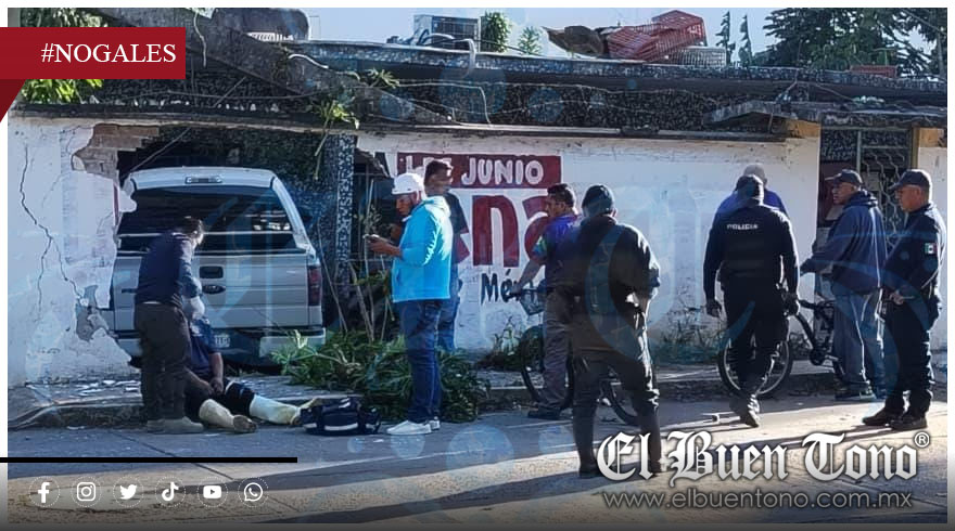 Nogales, Ver.- Una camioneta particular se salió de control y terminó incrustada en un domicilio ubicado en la colonia Aquiles Serdán, propiedad del exalcalde de Nogales, Antonio Bonilla Arriaga, dejando como saldo dos personas lesionadas y cuantiosos daños materiales.