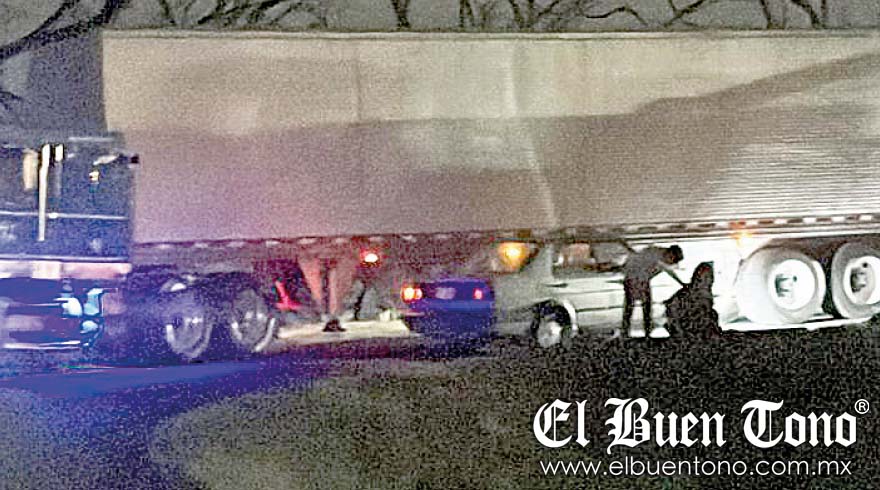 Fortín.- La imprudencia y la falta de precaución provocaron que un automóvil quedara incrustado debajo del remolque de un tráiler mientras cruzaban el puente a la altura de conocida universidad.