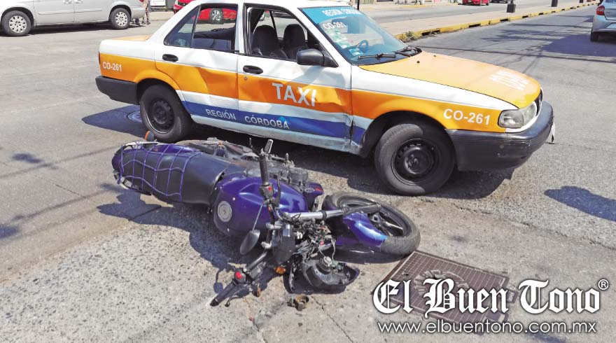 Córdoba.– Un motociclista fue atendido por paramédicos de la Cruz Roja, al estrellarse contra un taxi de Córdoba, el cual se le cruzó sobre el bulevar San Francisco y la calle Santa Cecilia, en el Infonavit San Román.