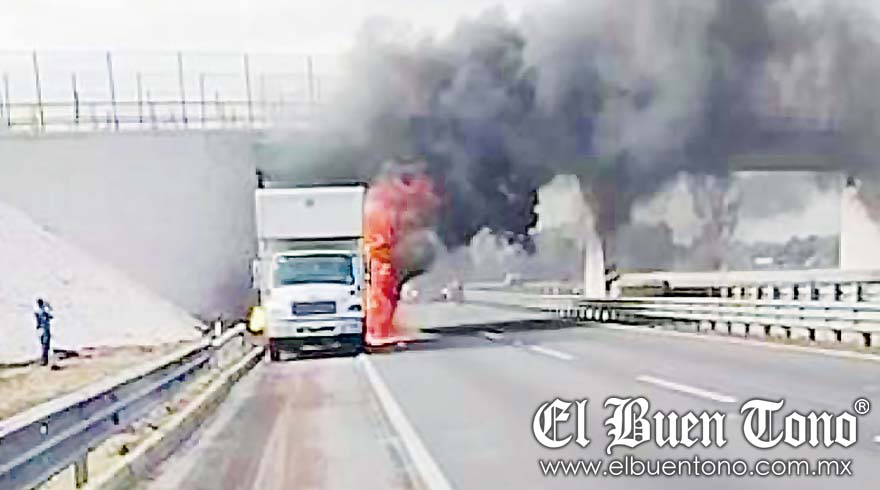 Acatzingo.- Un sobrecalentamiento en las balatas de un tractocamión de mudanzas, provocó un incendio al descender las cumbres de Maltrata, en la zona del poblado de Acultzingo.