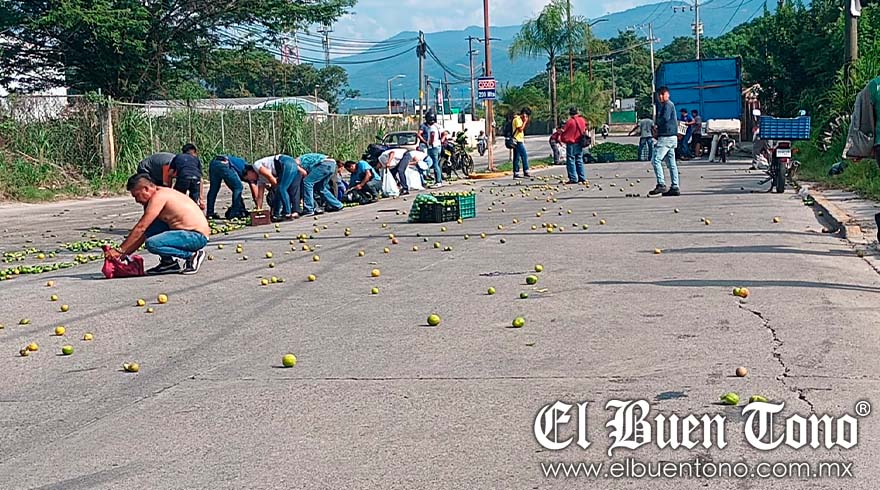 Este incidente pudo haber provocado un accidente mayor, pero eso no le importó a las personas con el fin de llevarse los limones, un cítrico que su precio ha llegado a costar hasta los 80 pesos.