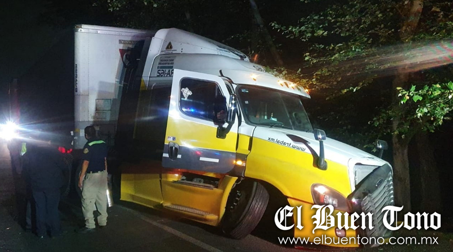 El percance ocurrió al filo de las 00:00 horas de ayer, cuando un vehículo marca Freightliner de color blanco con amarillo, placas 99-AL-2G del SPF, se desplazaba en dirección al estado de Puebla enganchado a un doble remolque. A la altura del kilómetro 263, la unidad sufrió un sobrecalentamiento en los frenos traseros y el operador no pudo mantener el control del volante debido a la alta velocidad, por lo que se salió del camino y se estrelló con el cerro.