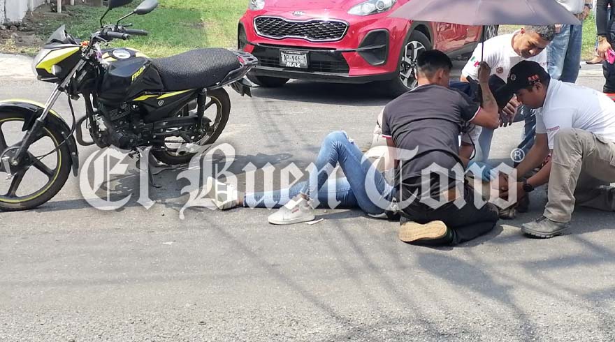 Córdoba. – Una pareja que viajaba en una motocicleta, resultó lesionada al chocar contra una camioneta se salió sin precaución de un taller, en la avenida 39 de la colonia Paraíso.