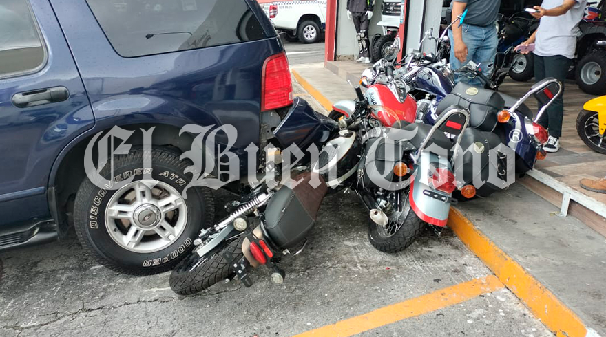 Orizaba, Ver.- La falta de pericia de un conductor, provocó que se estrellara contra un automóvil y tres motocicletas que estaban estacionadas.