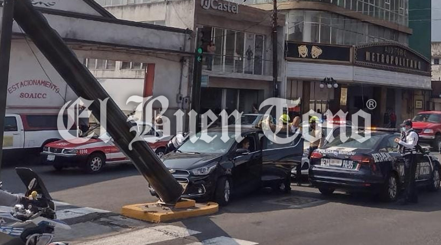 Orizaba.- Aparatoso accidente se suscitó la mañana de este martes sobre el bulevar de la avenida Poniente 7, luego de que una mujer perdió el control de su automóvil y se estrelló contra el semáforo que está en el cruce de la Sur 16, en la colonia Centro.