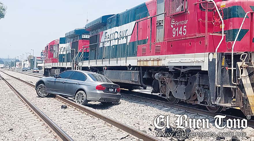 El conductor de un automóvil compacto quiso ganarle el paso al tren y terminó impactado y arrastrado varios metros sobre las vías férreas, en el cruce de avenida Orizaba y Oriente 6 en la colonia Barrio Nuevo, debajo del Puente Atirantado.