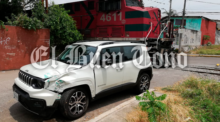 Fortín. – Una camioneta Jeep quedó abandonada cerca de las vías del tren en la colonia Santa Isabel, donde intentó ganarle el paso a la locomotora y lo impactó.