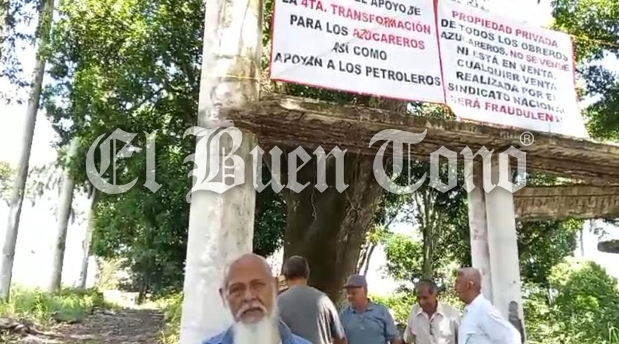 Amatlán.- Un grupo de obreros del ingenio Central San Miguelito, Central El Potrero y Central Progreso se manifestó al frente del laboratorio el Oasis para exhibir una lona donde manifiestan que el lugar es propiedad de obreros de nueve ingenios azucareros y no del Sindicato Nacional de Trabajadores de la Industria Azucarera y Similares de la República Mexicana (STIASRM) que pretende ponerlo en venta.
