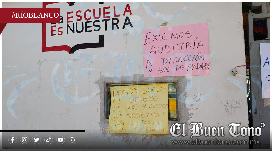 Río Blanco.- Un grupo de padres de familia de la Escuela Secundaria Vicente Guerrero se manifestó este día para denunciar un desvío de recursos por 7.8 millones de pesos y exigir la destitución de la directora y la presidenta de la Sociedad de Padres de Familia (APF).