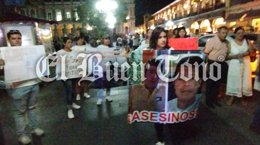 Con cartulinas y lonas, exhibieron a los presuntos responsables del homicidio, y alzaron la voz para que los hechos no queden impunes y se agilicen las investigaciones y den con los responsables ya identificados.