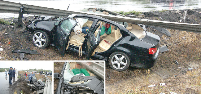 Los hechos se suscitaron cuando el automóvil, conducido por Ricardo López Sierra, quien se presume conducía la unidad a exceso de velocidad, se estrelló contra la barra de contención, muriendo de manera instantánea el profesor jubilado, vecino de la colonia Benito Juárez, en el Distrito Federal.