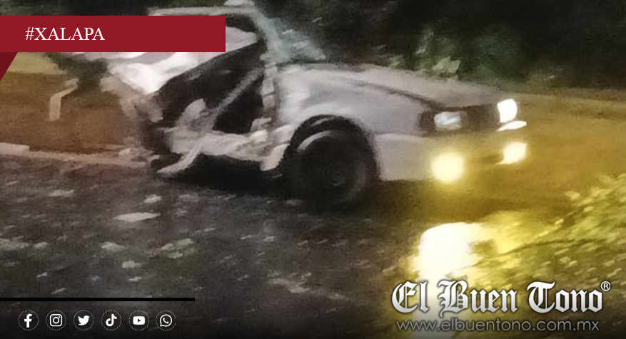 Xalapa, Ver.- La madrugada de este viernes se registró un fuerte accidente automovilístico sobre la avenida Lázaro Cárdenas, frente a Plaza Américas, en el que se vio involucrado un vehículo tipo Tsuru.