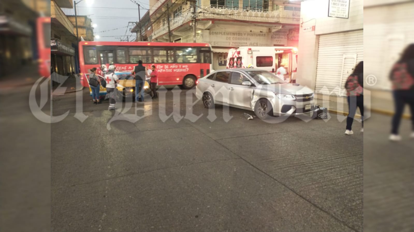 Paramédicos de la Cruz Roja atendieron al taxista y otra persona que iba de pasajera en la unidad de transporte público.
