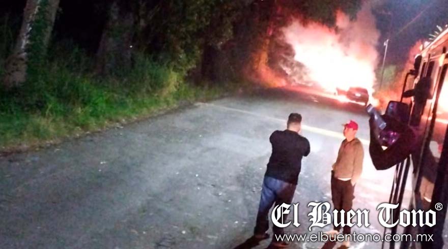 Córdoba.- Un automóvil Nissan Tsuru se incendió la noche de ayer en la carretera estatal Córdoba-Naranjal, a la altura de la comunidad San José Tapia.