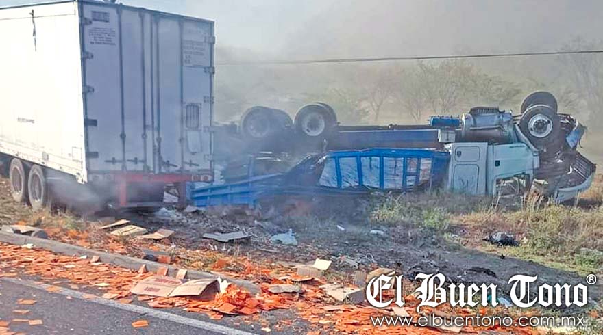 Asimismo, una camioneta particular de color blanco y placas SP-179-73 del estado de Puebla, que circulaba por la zona, fue impactada por el tráiler y también volcó, lo que dejó a dos de los conductores lesionados.