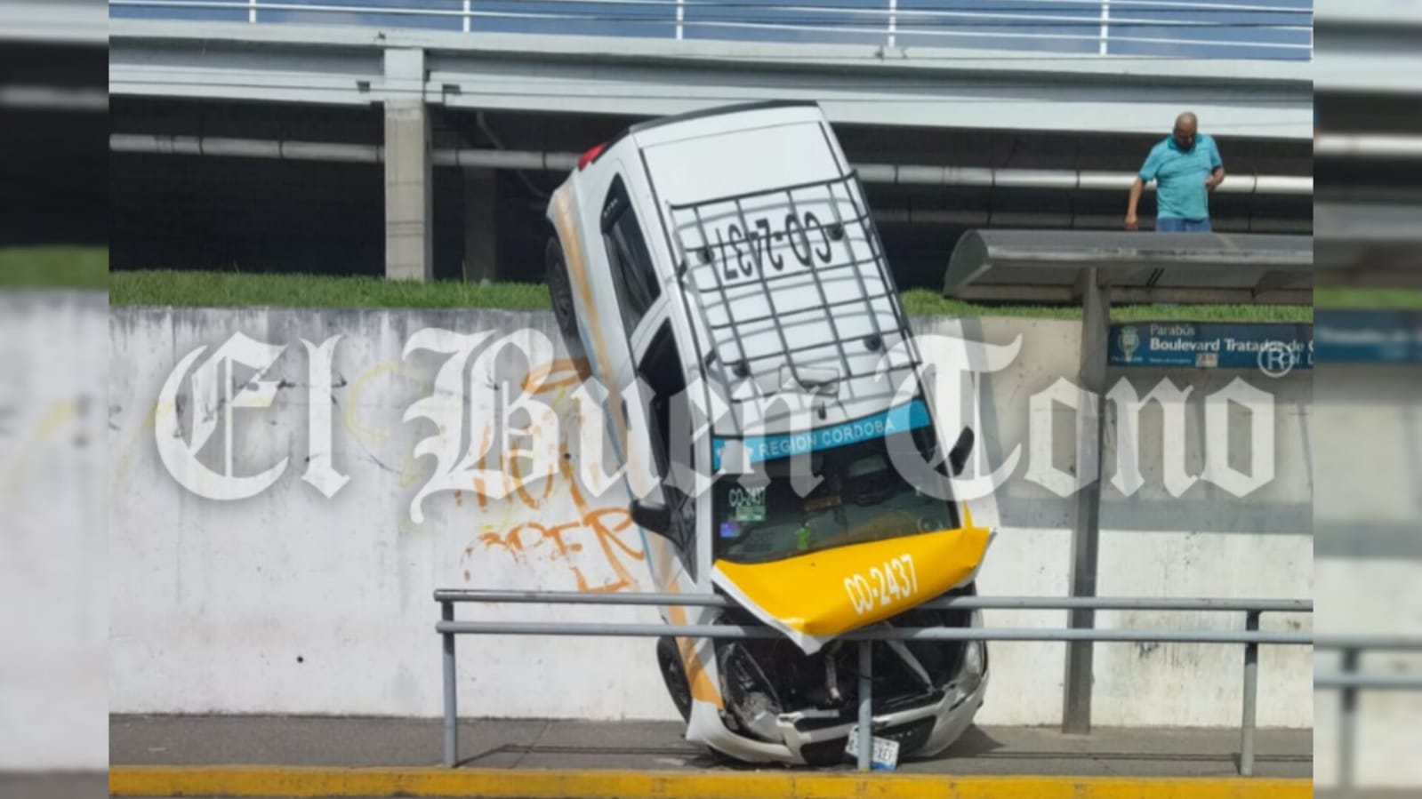Córdoba. – Un taxi de Córdoba marcado con el número CO-2437 terminó volcado junto a un parabus en el bulevar Tratados de Córdoba, después de que el vehículo se quedara sin frenos mientras estaba estacionado dentro de Plaza Cristal.