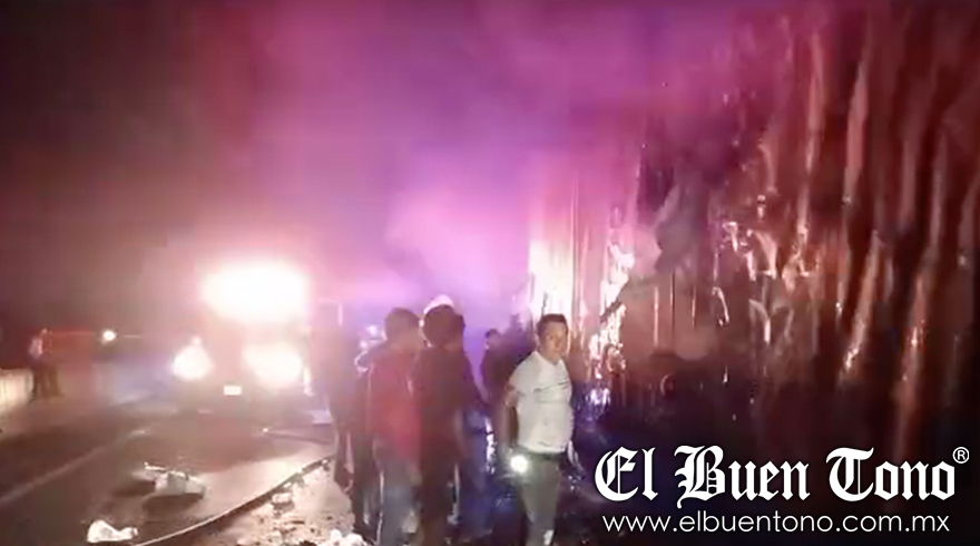 Maltrata.- La mafrugada de hoy y all descender las cumbres de Maltrata sobre la autopista Puebla – Córdoba, un tractocamión que transportaba vacunas se quemó al parecer debido a una falla mecánica.