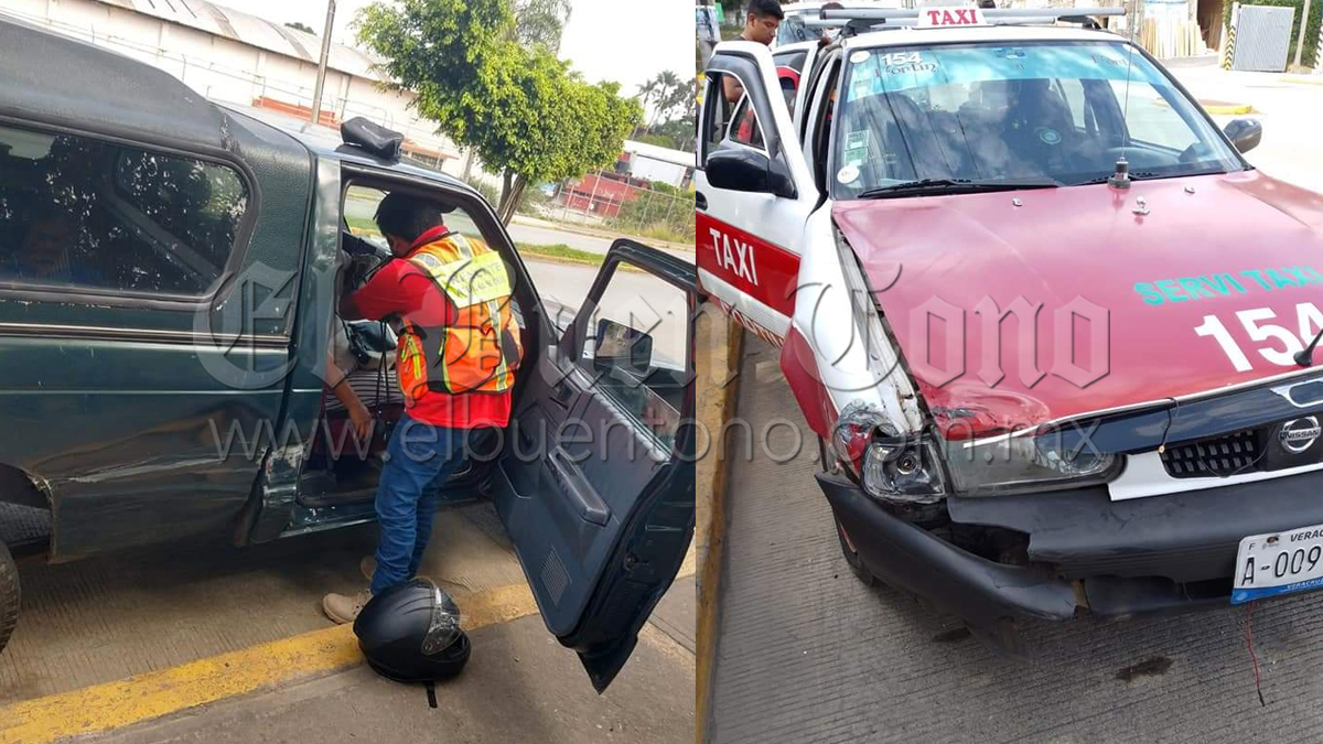 Fortín.- Tres personas lesionadas, presencia de los grupos de auxilio así como de las autoridades de Tránsito Estatal, fue lo que dejó el choque entre un taxi y una camioneta sobre el bulevar Córdoba-Fortín frente aun centro comercial, debido a que el conductor del taxi al pretender incorporarse al bulevar no extremo las precauciones necesarias provocando el accidente al realizar un corte de circulación.