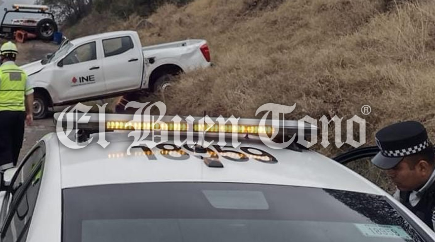 El segundo percance se suscitó instantes después, cuando un trabajador del INE perdió el control de la unidad en la que viajaba, y acabó volcado llantas arriba a escasos metros de dónde quedó el otro vehículo, aunque por increíble que parezca salió ileso; elementos de la Guardia Nacional División Carreteras tomaron conocimiento de los hechos.