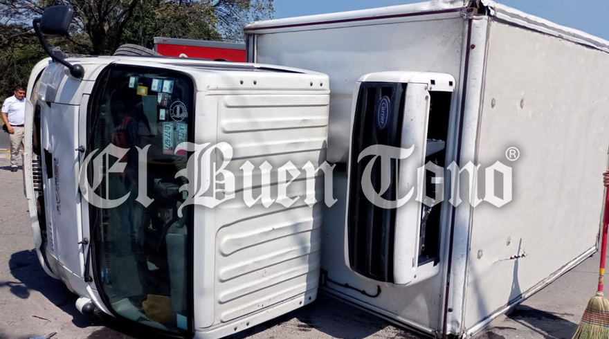 Amatlán.- Un camión de carga quedó volcado sobre la carretera federal Córdoba-Veracruz, a la altura de Venta Parada, luego de haber sido impactado por otro camión de la empresa Lala.