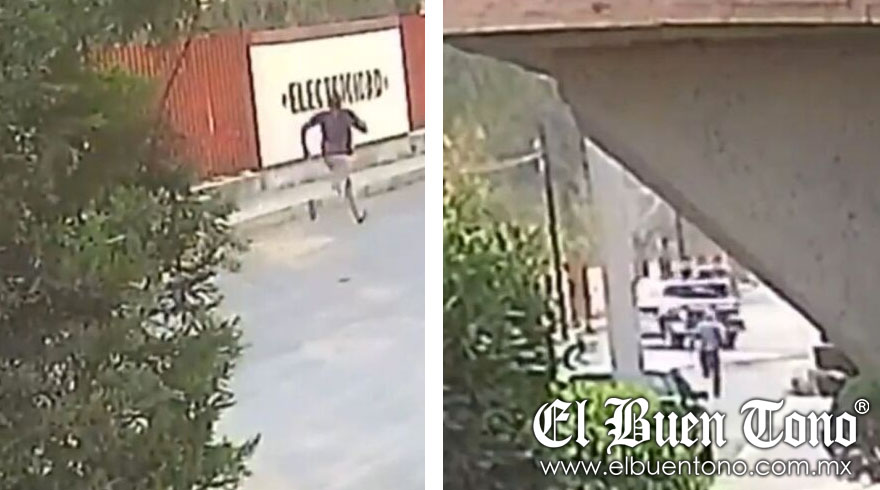 En el video, que según el registro de filmación corresponde a las 16:57 horas del 21 de enero, se percibe a un sujeto de pantalón café, playera y gorra negra correr en medio de la vialidad. La unidad de la policía, que está una cuadra adelante, reversa para acercarse y le permite el ingreso del lado del copiloto. Después, acelera y escapa del lugar.