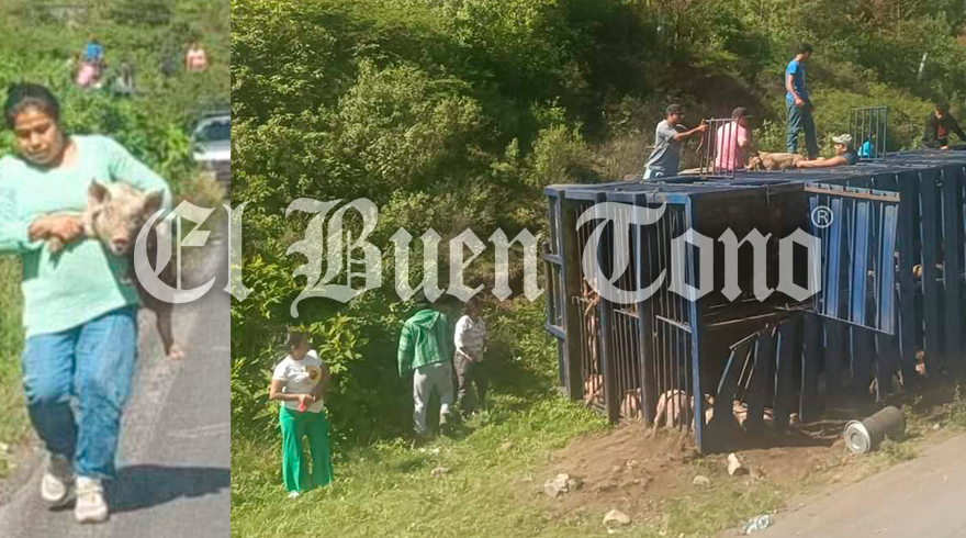 Acultzingo, Ver.- Más de 100 marranos fueron robados por los pobladores de la zona de Los Chirimoyos del municipio de Acultzingo, luego de que un camión cargado con el ganado porcino, volcara sobre la carretera federal 150 Orizaba-Tehuacán a la altura de las Cumbres de Acultzingo.