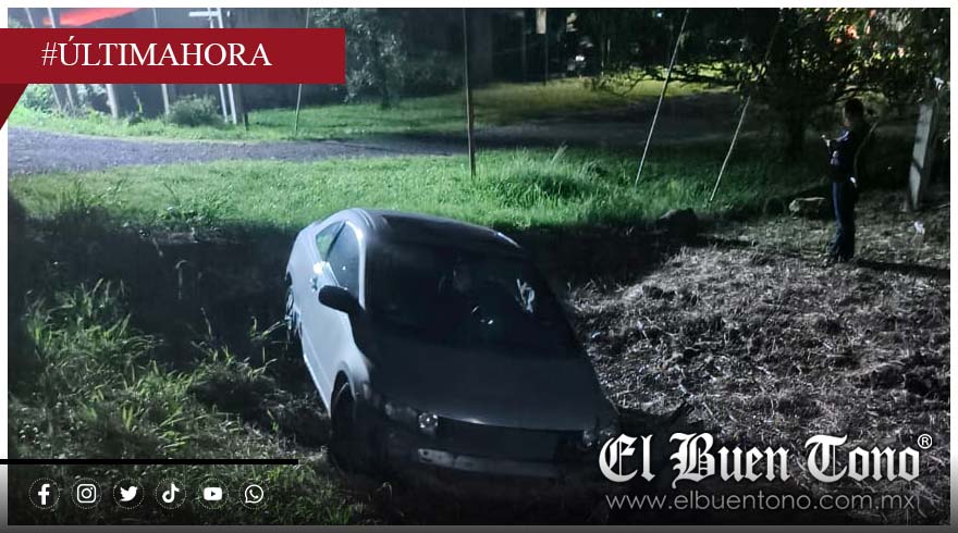 Amatlán.- Un automóvil terminó en un terreno, luego de que el conductor perdió el control al salirse de la carretera federal Córdoba-Veracruz, a la altura de la localidad Parada La Concha.