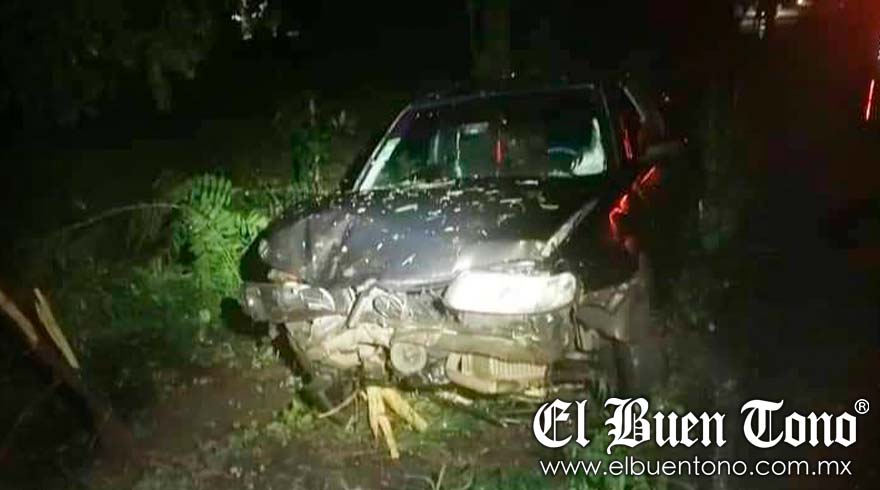 YANGA.- Un automóvil de color gris, resultó dañado al salirse de la carretera estatal a Omealca después de que la conductora perdiera el control en el área conocida como Palo Mocho.