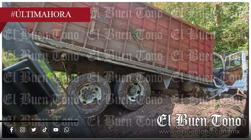 Coscomatepec, Ver.- Un camión cañero vacío se salió del camino y estuvo a punto de caer a un barranco durante la mañana de este domingo en la carretera federal Fortín-Conejos.
