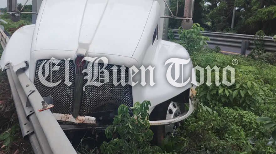 La Tinaja, Ver.- Un camión tortón se salió del camino y terminó chocando contra la barra de contención, durante la tarde de este miércoles en la autopista Cosamaloapan – La Tinaja, a la altura del kilómetro 107.