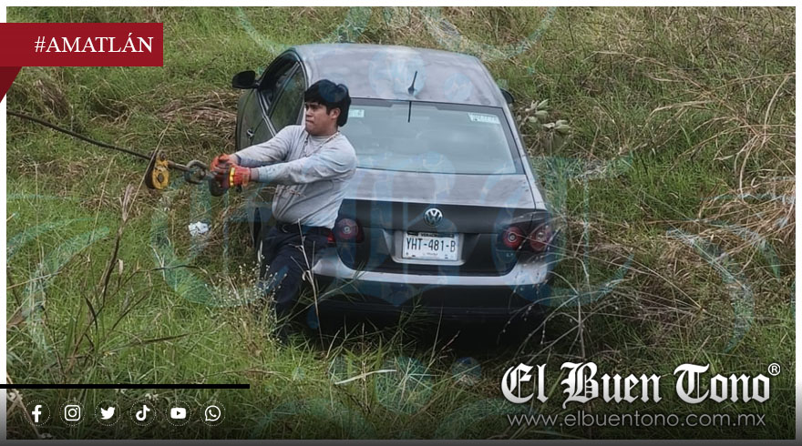 Amatlán, Ver.- Un automovil Volkswagen tipo Bora, color negro, con placas de circulación YHT-481-B, se salió del camino y cayó a un barranco, esta mañana de lunes en la desviación a Potrero Nuevo, ante de llegar al balneario La Maquinaria.