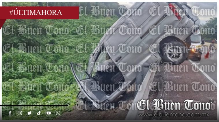 Cotaxtla, Ver.— Una camioneta se salió del camino y quedó sobre la barra de contención esta tarde, en la autopista Córdoba–Veracruz, a la altura del kilómetro 45.