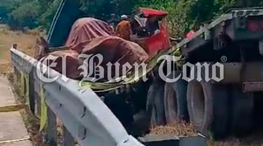 La unidad quedó dentro de un terreno, hasta donde llegó otro tráiler para trasladar la carga y retirar la unidad accidentada.