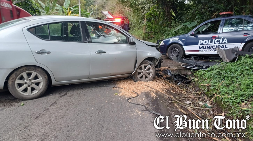 Ixtaczoquitlán. – Un automóvil quedó desbaratado de la parte frontal, al caer a una cuneta, luego de esquivar un bache en la carretera federal Fortín – Ixtaczoquitlán, a la altura de la Herradura.