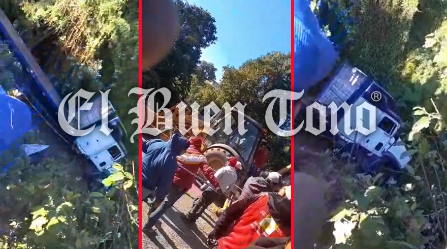 Coscomatepec.- Un tractocamión terminó en un barranco, al circular sobre la carretera que comunica a Tetelcingo.