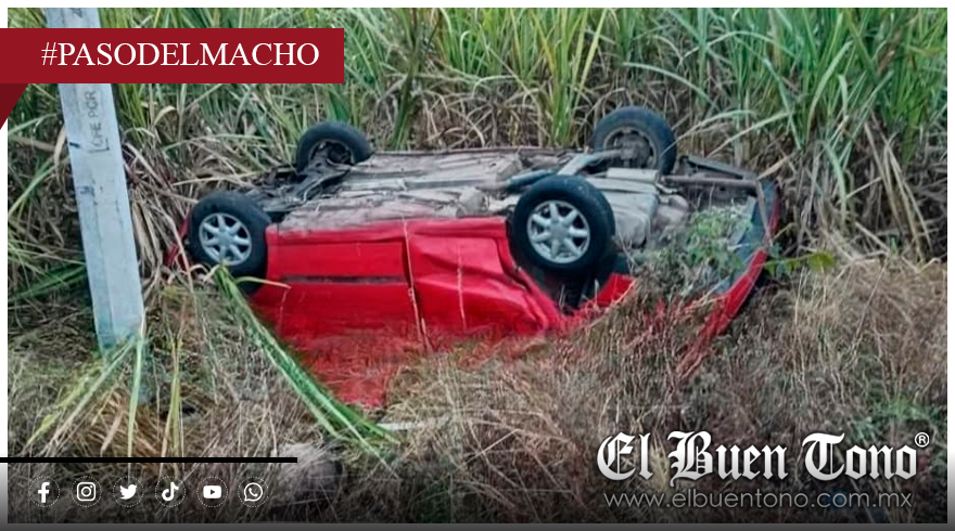 Paso del Macho.– Un vehículo Chevrolet Corsa, color rojo, se salió del camino y volcó sobre la carretera estatal Paso del Macho–Tepatlaxco, luego de que el conductor intentara evitar arrollar a un motociclista que invadió su carril.