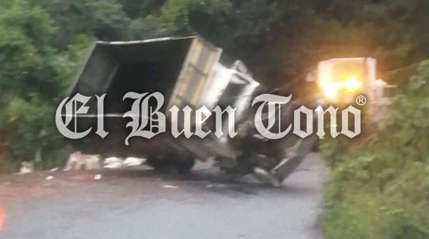 Tlaltetela, Ver.- Un camión cargado con café se volcó la noche de ayer lunes sobre la carretera estatal a Xalapa, a la altura del lugar conocido como El Vado.