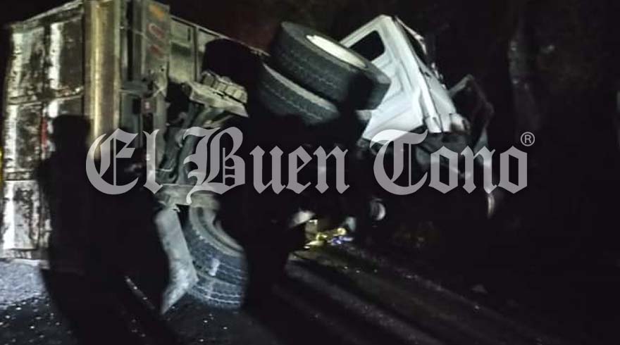 Zongolica, Ver. – Un camión de volteo que transportaba varias toneladas de grava se volcó en la carretera estatal de Orizaba hacia Tequila.
