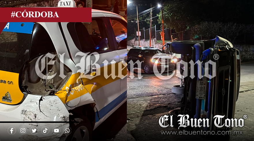La volcadura se registró debido a la velocidad inmoderada y la falta de precaución por parte del conductor, quien choca contra el taxi y se vuelca.