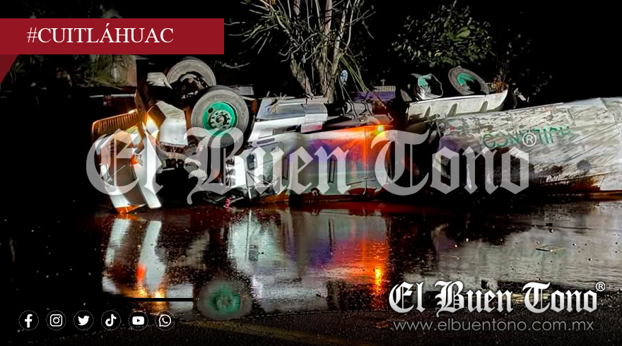 Cuitlahuac Ver.- Una pipa cargada con melaza se volcó durante la madrugada de este jueves