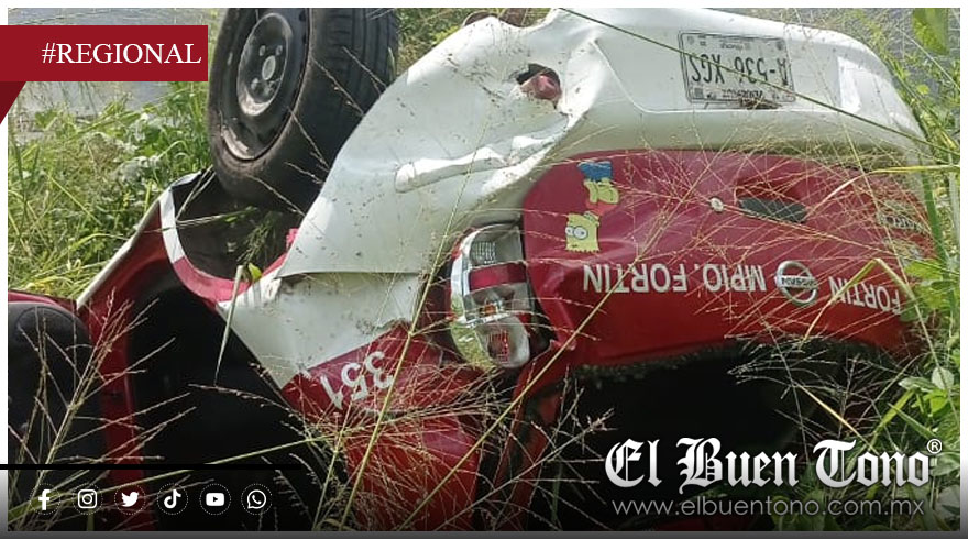Amatlán, Ver.- El taxi número 351 de Fortín, se volcó y terminó seriamente dañado al volcarse esta tarde de lluvia a la altura del kilómetro 4 de la autopista Córdoba-Veracruz.