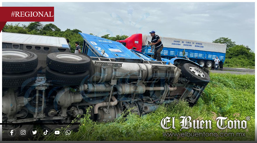 Paso del Toro, Ver.- Un tráiler cargado con cartones con cerveza se volcó la mañana de este domingo en la autopista Córdoba-Veracruz, antes de llegar a la caseta de cobro de Paso del Toro.