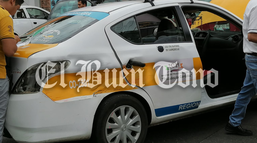 Córdoba.- Daños materiales dejó el percance entre un autobús de pasaje y un taxi con el número marcado CO-2501, los cuales chocaron por alcance en el cruce de la calle 11 avenida 7 de la colonia centro.