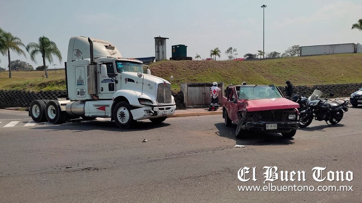 Córdoba.- Los ocupantes de una camioneta Nissan-Pick Up resultaron con algunos golpes luego de que fueron impactados por un tractocamión Kenworth, con razón social a nombre de Transportes Debernardi, debido a que uno de los conductores no respetó el semáforo.