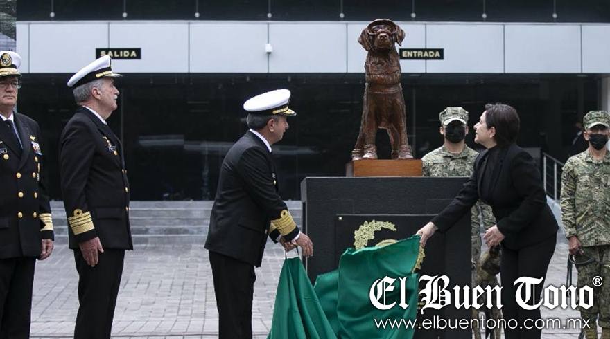 Fue el titular de la Secretaria de Marina (Semar), José Rafael Ojeda Durán, quien develó la estatua de la perrita Frida, quien este año cumplió 13 años de edad y se encuentra actualmente en situación de retiro desde el pasado 24 de junio de 2019.