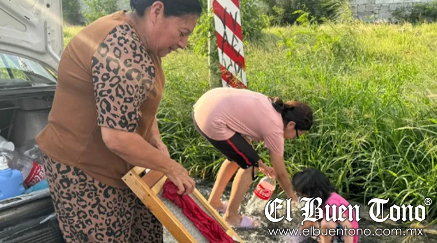 “No tengo agua en mi casa, así que traje todo para lavar aquí, incluso mis tenis. Nosotros todavía no nos hemos bañado, acabamos de llegar,” comentó María Guadalupe, residente de la colonia Fama 3.