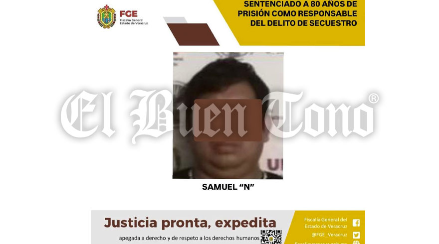 Córdoba.- El órgano autónomo encargado de la procuración de justicia en Veracruz logró una sentencia de 80 años de prisión en contra de Samuel “N”, quien fue declarado culpable del secuestro y asesinato de una persona identificada como V.D.S., en un caso que estremeció a la región central de la entidad.
